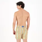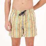 Introducing our Originals in Strata Stripe: A new take on the classic stripe. In a world of digital stripes, we wanted to create something that looked like someone painted on the fabric directly. These organic stripes in earthy colours are one of a kind. Our Mid-Length Original Swim Shorts outer is made from 100% peached microfiber with UV protection. The outer fabric has a peach handle which allows for quick drying and comfortable wearability. The inner mesh is ultra-soft to the touch with mechanical stretch.
