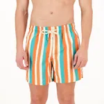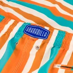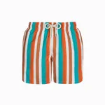 Introducing our Originals in our Tonal Stripe: channel retro charm with these swim shorts, featuring tonal stripes in rich rust and cool aqua hues. The vintage-inspired pattern evokes a sense of timeless style, perfect for those who appreciate classic beachwear with a contemporary edge. Our Mid-Length Original Swim Shorts outer is made from 100% peached microfiber with UV protection. The outer fabric has a peach handle which allows for quick drying and comfortable wearability. The inner mesh is ultra-soft to the touch with mechanical stretch.