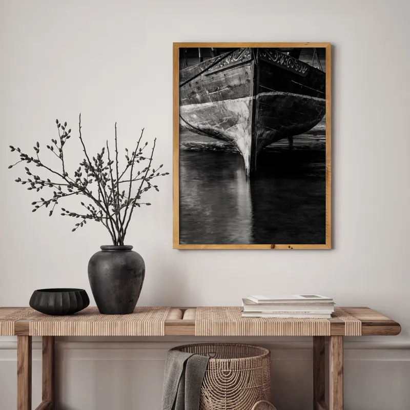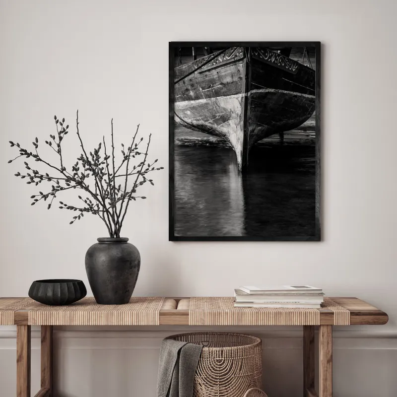 Black framed canvas: Premium canvas stretched and surrounded by a black shadow box frame.