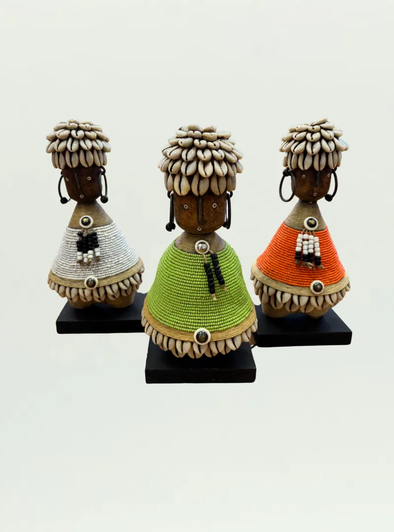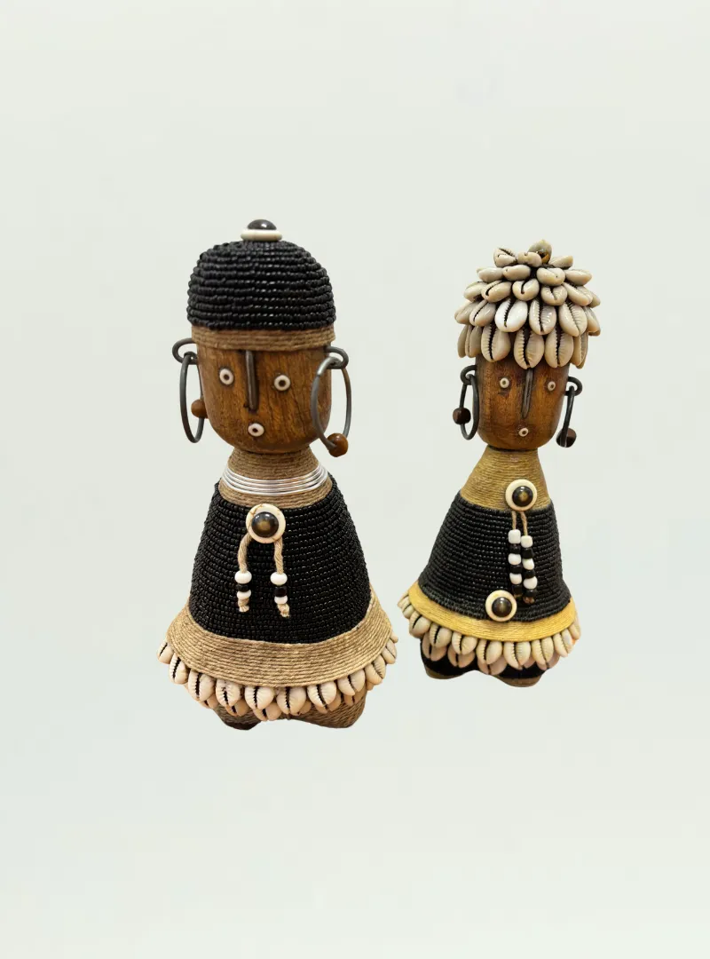 Celebrate the artistry of the Namji people with this beautifully handcrafted Namji Doll from Cameroon. Traditionally used as fertility and good luck charms, these dolls are adorned with intricate beadwork, cowrie shells, and wooden carvings, making them a unique statement piece for any space. Perfect for collectors and lovers of African decor.