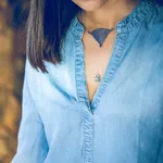 Drop necklace with hand beaded triangular pendant. Sterling silver anchor chain, clasp and hand stamped disk