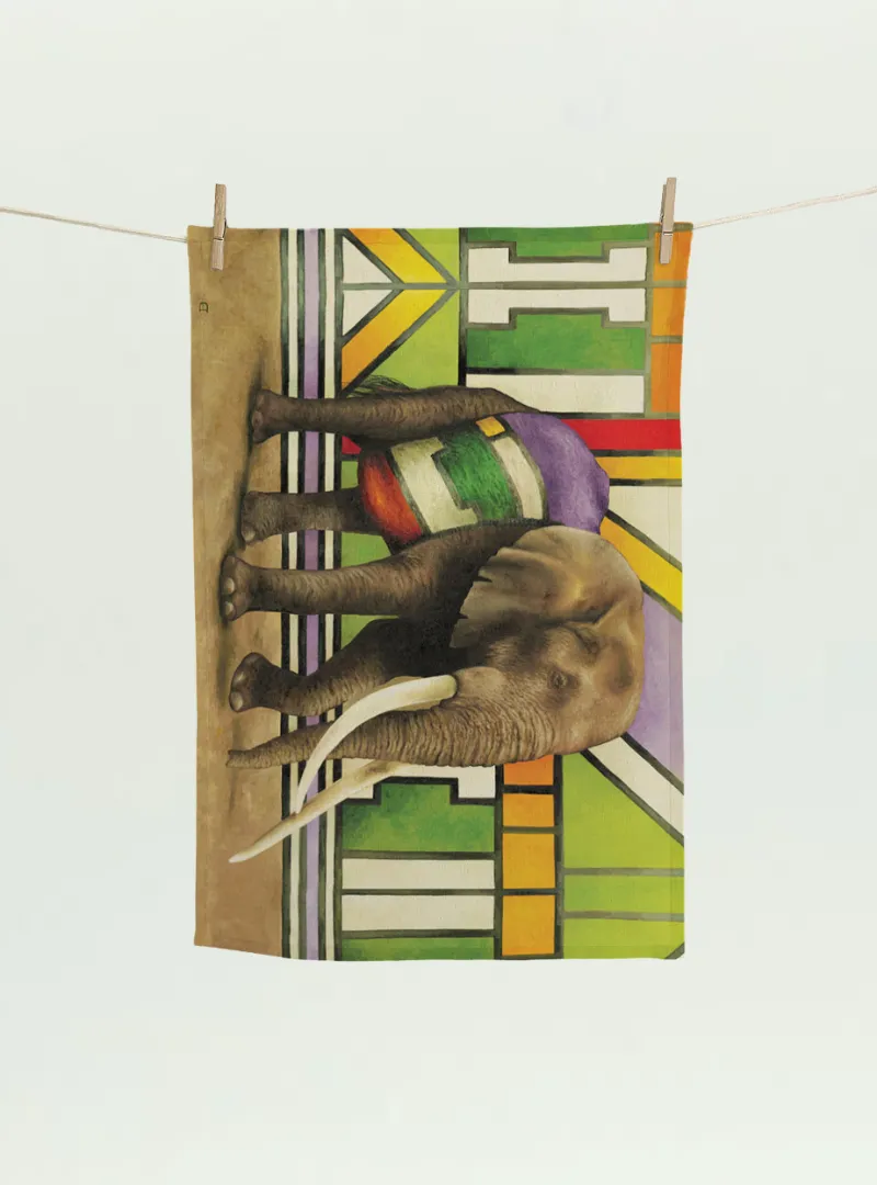 This tea towel is 100% cotton and has a hang tag in one corner.