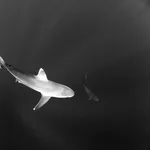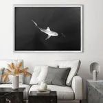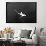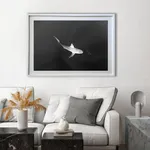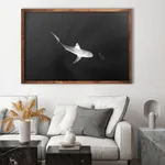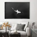 This artwork captures the beautiful and tender relationship between a mama shark and her baby shark. As they swim together in the vast ocean, the mama shark guides and protects her young, highlighting the strong bond and nurturing nature of these magnificent creatures.