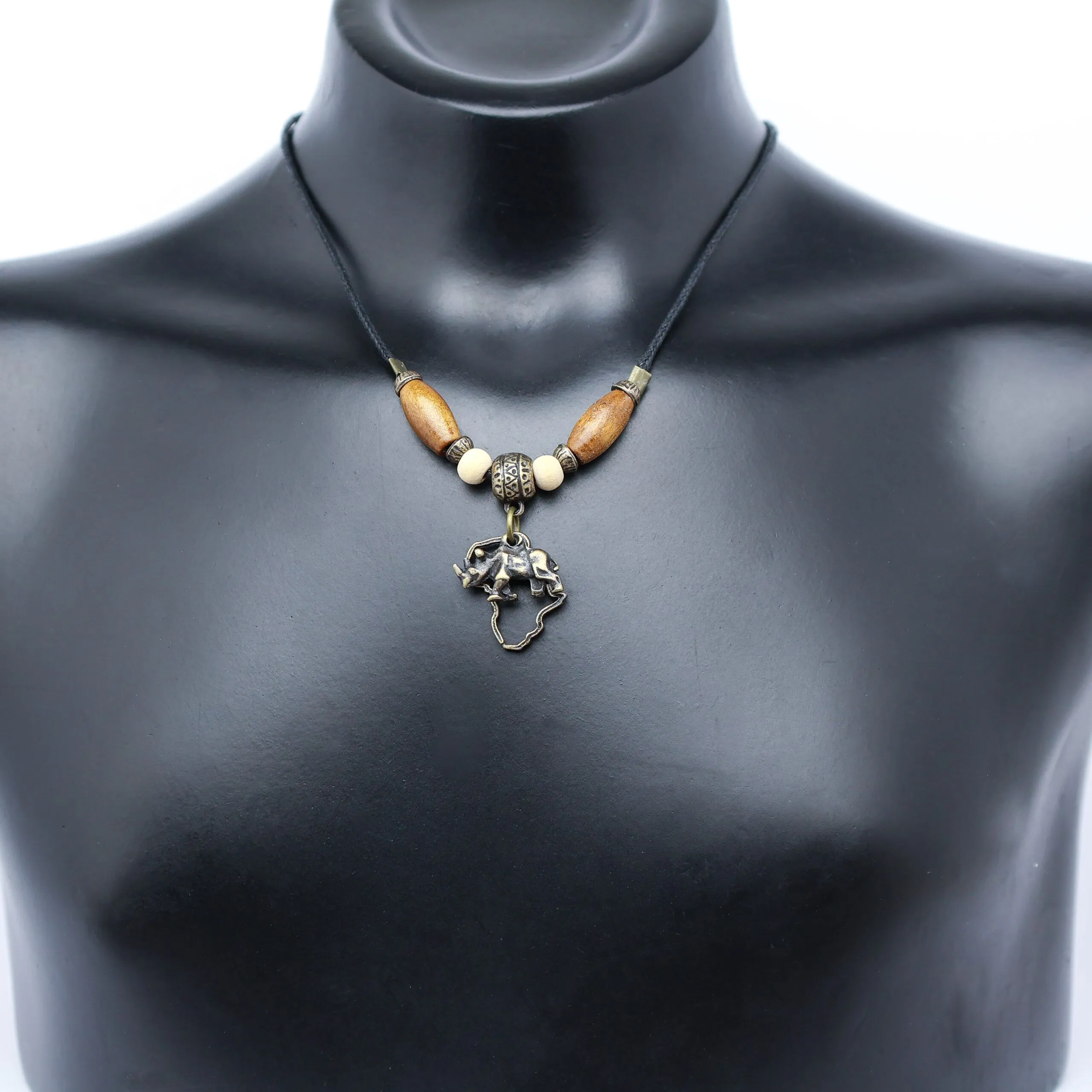 Antique Brass Animals (Assorted) in Africa Charm with Wood on Nylon Cord