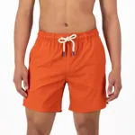 These swim shorts are a striking burnt orange colour, offering a bold and energetic look that's perfect for summer. The shorts feature a clean and minimalistic design, with the solid colour making a strong statement.
