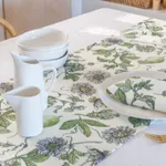 Immerse yourself in the lush foliage and delicate blooms, expertly illustrated by Ann C. Jooste. Made from locally produced fabric, derived from 100% recycled PET bottles, this table runner embodies sustainability and durability. With eco-friendly water-based ink prints, it's a guilt-free choice that doesn't compromise on style.