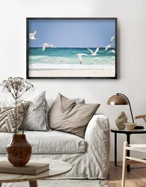 Black framed canvas: Premium canvas stretched and surrounded by a black shadow box frame.