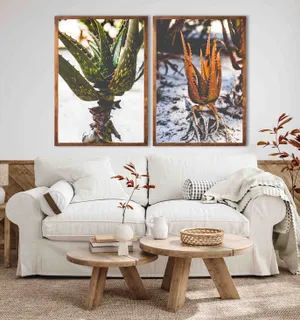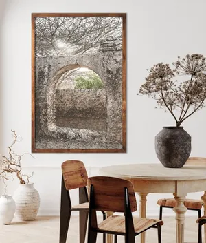 Raw wood types: Premium canvas stretched and framed with an outer wooden frame in the style selected.