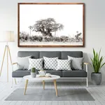 Black framed canvas: Premium canvas stretched and surrounded by a black shadow box frame.