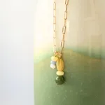 This stack plays with gemstones of varying sizes and shapes to create a charm that’s full of life and energy. Its shades of yellow and green are reminiscent of the African Savanna.