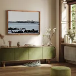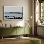 Black framed canvas: Premium canvas stretched and surrounded by a black shadow box frame.
