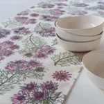 Adorned with exquisite artworks of indigenous miniature Proteas and Serruria, each brushstroke captures the delicate essence of these remarkable flowers. Printed on locally produced fabric made from 100% recycled PET bottles, this table runner is not just visually stunning, but also a sustainable choice for your home. With eco-friendly water-based ink and a luxuriously soft yet durable fabric, it's time to add a touch of elegance and eco-consciousness to your dining experience.