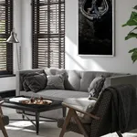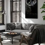 Black framed canvas: Premium canvas stretched and surrounded by a black shadow box frame.