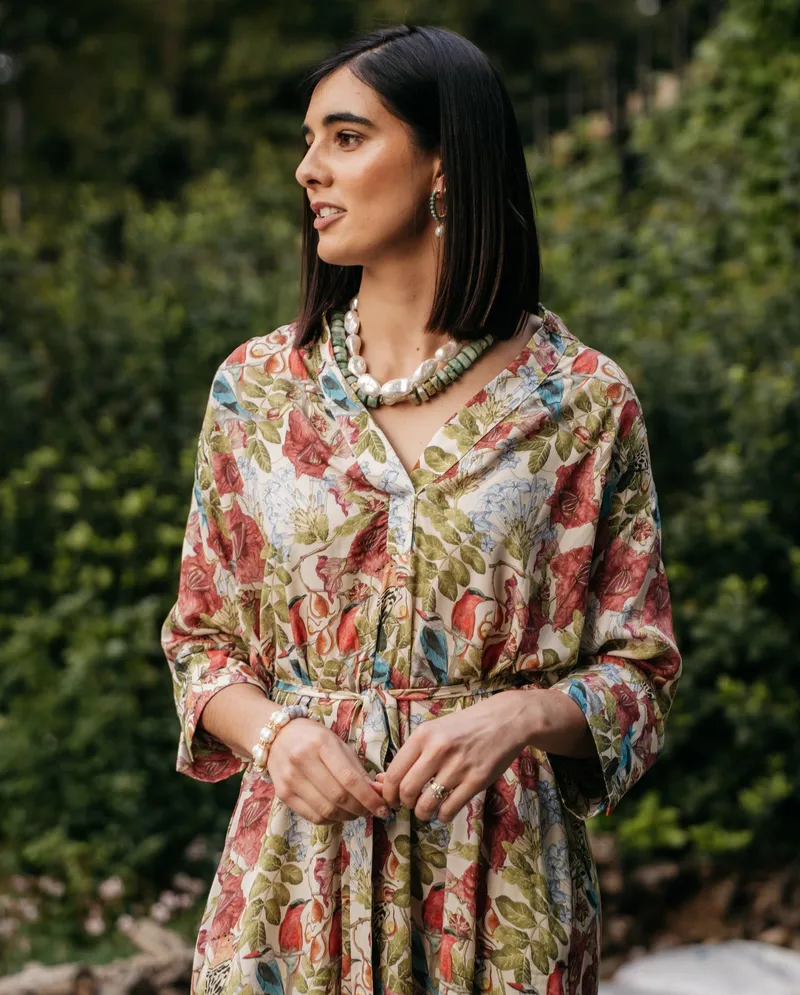 Our Africa Adorned Shirt Dress blends classic tailoring with effortless style, designed to transition seamlessly from casual days to elegant evenings. Crafted in South Africa from sustainably sourced natural fabrics, each dress carries our signature hand-painted botanical and wildlife prints - wearable art that tells a story.