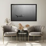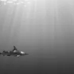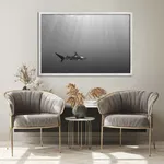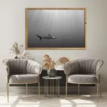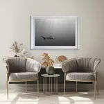This striking black and white photograph captures the solitary essence of a lone shark. The shark's powerful form cuts through the water with graceful strength, while its solitary nature is emphasized by the stark contrast of the black and white tones. The image evokes a sense of awe and respect for this incredible predator and the immense power it possesses. Through this photograph, we are reminded of the importance of respecting and protecting the natural world and the creatures that call it home.