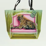 20L Shopping bag made from recycled fabric. The original 'Spotted Hyena at Leisure' painting was done in oils on canvas by South African artist Dezireë Smith.