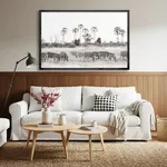 Black framed canvas: Premium canvas stretched and surrounded by a black shadow box frame.