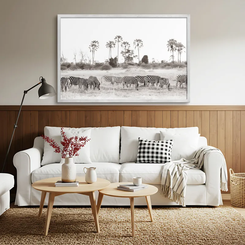 Black framed canvas: Premium canvas stretched and surrounded by a black shadow box frame.