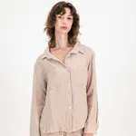 This shirt is the perfect every day summer go to. It is a collared shirt with a button front so can be worn buttoned up or open. It has two front pockets. It is a long sleeve shirt but very lightweight which means it is perfect for the summer. It comes in white, butter-cream as well as cappucino.
