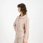 This shirt is the perfect every day summer go to. It is a collared shirt with a button front so can be worn buttoned up or open. It has two front pockets. It is a long sleeve shirt but very lightweight which means it is perfect for the summer. It comes in white, butter-cream as well as cappucino.
