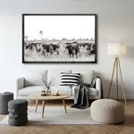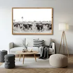 Black framed canvas: Premium canvas stretched and surrounded by a black shadow box frame.