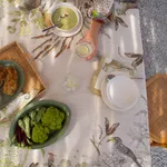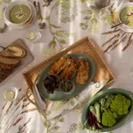 Make a bold statement with our Safari Symphony tablecloth — where art, storytelling and functionality meet. Adorned with elegant African wild dogs, leopards and wild botanicals, this design is beautifully set against its neutral background and golden yellow border. Crafted from premium natural fabric and printed locally with non-toxic inks, it’s an unforgettable centrepiece for special occasions or everyday luxury.