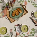 Make a bold statement with our Twilight Tapestry tablecloth — where art, storytelling and functionality meet. Adorned with elegant African wild cats, Blue cranes and iconic african flora, this design is beautifully set against its neutral background and terracotta-coloured border. Crafted from premium natural fabric and printed locally with non-toxic inks, it’s an unforgettable centrepiece for special occasions or everyday luxury.