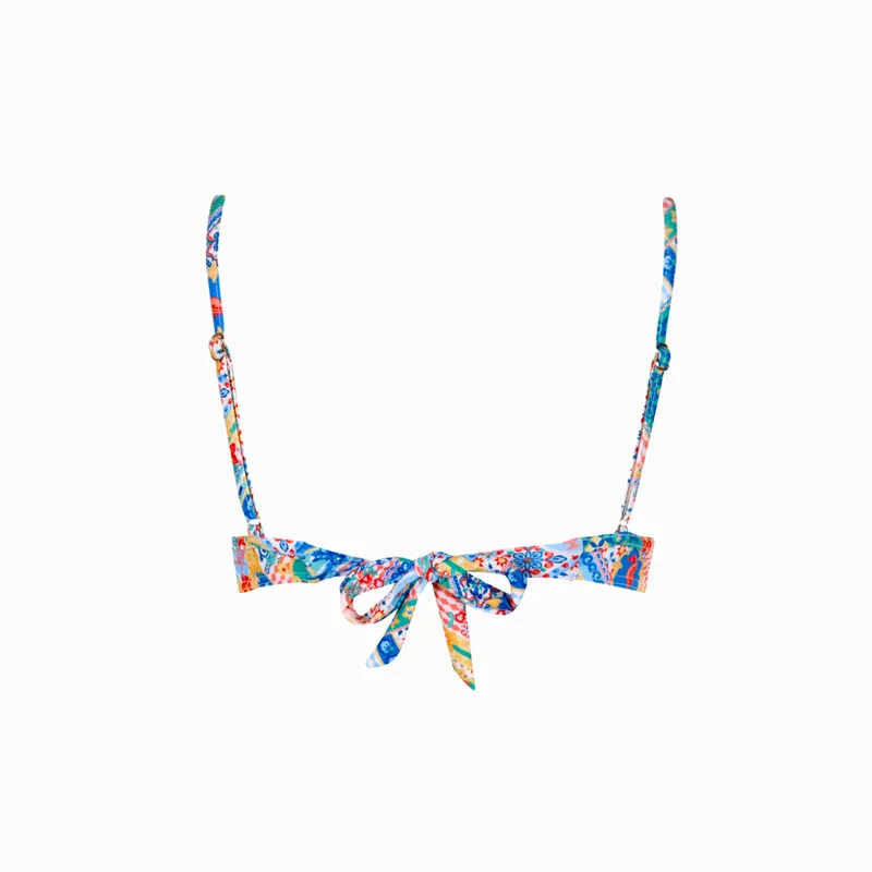 This top features an underwire design with enhancing demi cups and adjustable shoulder straps. The simple back tie ensures a comfortable and tailored fit, making it a perfect blend of style and support.