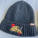 Our Textured Knit Tropical Sunset Beanies are a surf, skate, winter must-have. Thicker textured wool, with good stretch and breathability make for the perfect accessory.Available in charcoal and grey. Feauturing our abstract Tropical Sunset Illustation embroidery by Liam MacSweeney.