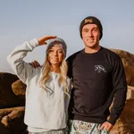 Our Textured Knit Tropical Sunset Beanies are a surf, skate, winter must-have. Thicker textured wool, with good stretch and breathability make for the perfect accessory.Available in charcoal and grey. Feauturing our abstract Tropical Sunset Illustation embroidery by Liam MacSweeney.