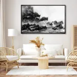 Black framed canvas: Premium canvas stretched and surrounded by a black shadow box frame.