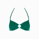 Introducing the Jodi Top in Woodlands: a stunning piece adorned in shimmering green, fit for a goddess. Soak up the sun in this bandeau style which features a centre silver ring, removable and adjustable halter strap for the perfect lift and support. For sun-tanned shoulders, it's your go-to for all beach adventures.