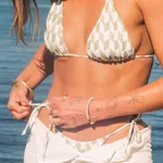 Introducing the Jords Tri Bottom in Tessa: A fresh take on a classic houndstooth, this print was made in one of the most loved colours in fashion right now, it’s hard to go wrong with something so lux. The Bikini bottom has an adjustable side tie bottom to suit your comfort. Wear the straps higher or lower on the hips to fit your perfect style. The bottom features delicate o-rings to elevate a loved staple.