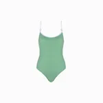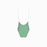 Introducing the Phila One-Piece in Tea Fatigue: in a classic green of the season with a white binding around the neck sets this piece apart. The one-piece features a beautiful scooped back and subtle neckline, complemented by a mid-high cut leg. Designed with built-in padding for extra support, this piece is universally flattering on all bodies.