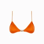 The Natalie Top features a sleek bralette silhouette with adjustable side ruching for a custom fit. Delicate shoulder straps tie at the back, offering both comfort and versatility. At the centre, a signature gold shell trim adds a touch of coastal elegance, elevating this timeless design into a summer essential.