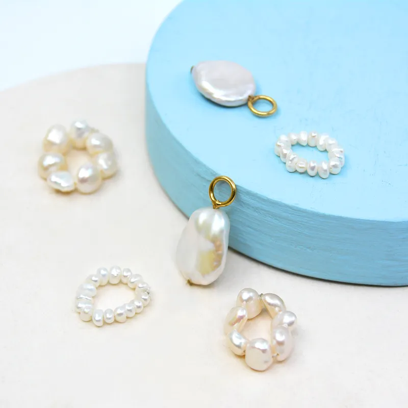 Wonky Pearl Hoop Charm x 2