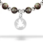 The dragon blood jasper beads, carefully selected for their striking resemblance to this magnificent amphibian, boosts courage, strength, and vitality. The centrepiece of the bracelet is the ghost frog pendant, a powerful symbol of our collective responsibility to protect and conserve wildlife, including that which is less well known.
