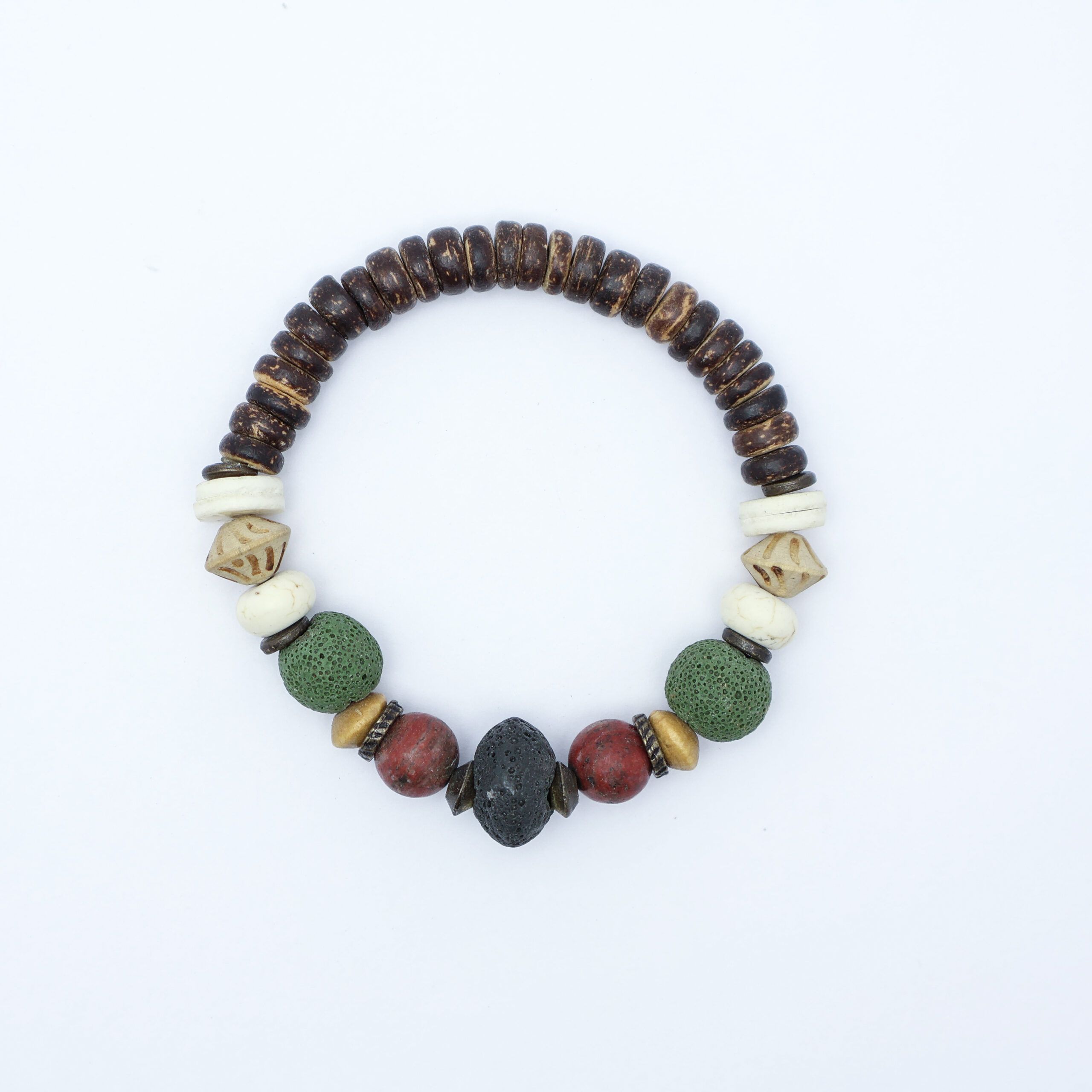 Coconut wood with ostrich eggshell and polished aventurine gemstones bracelet - BRE37A
