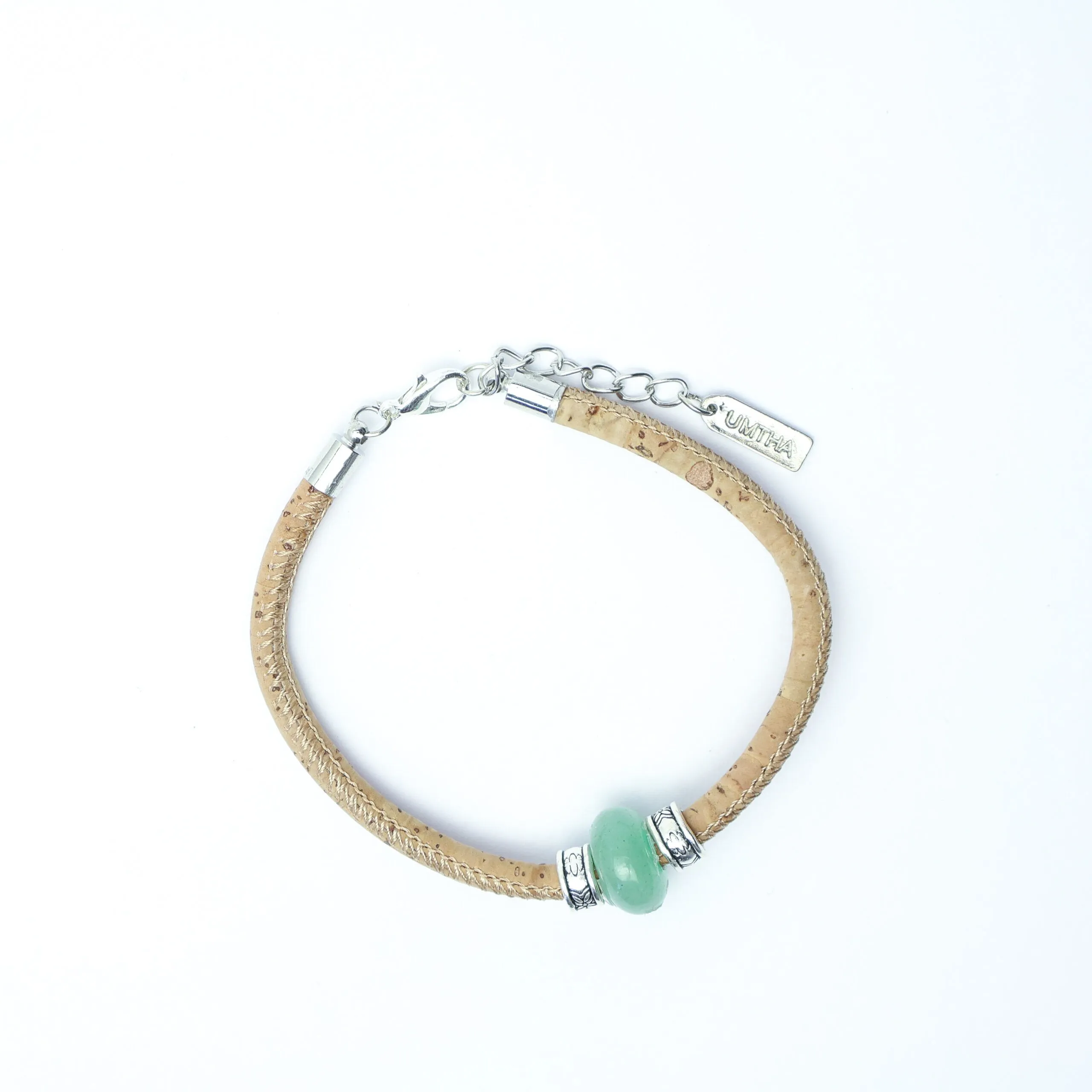 Sustainable Cork with an Aventurine Rondelle and Silver Detail