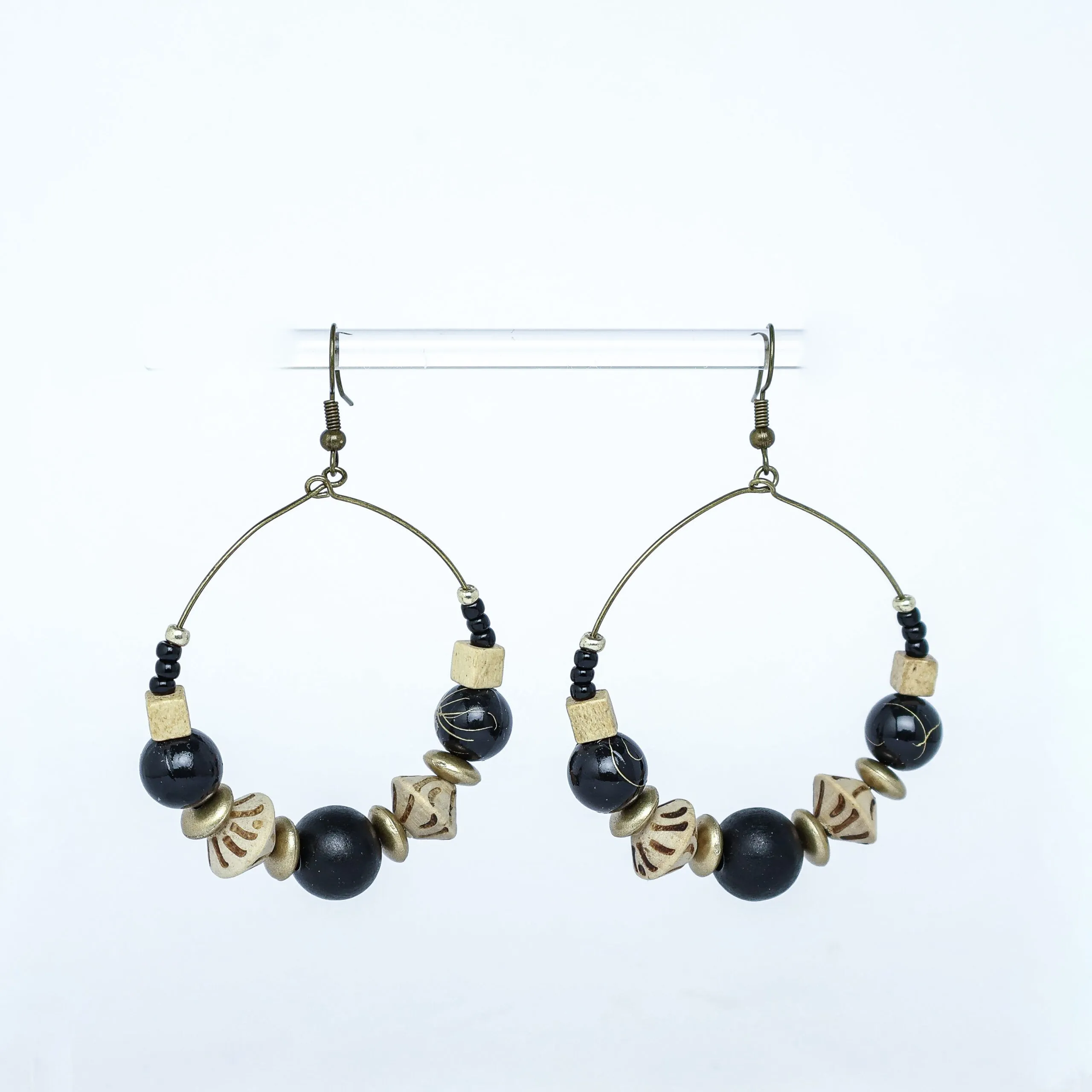 Antique Brass Hoops with a Selection of Black and Gold Wood