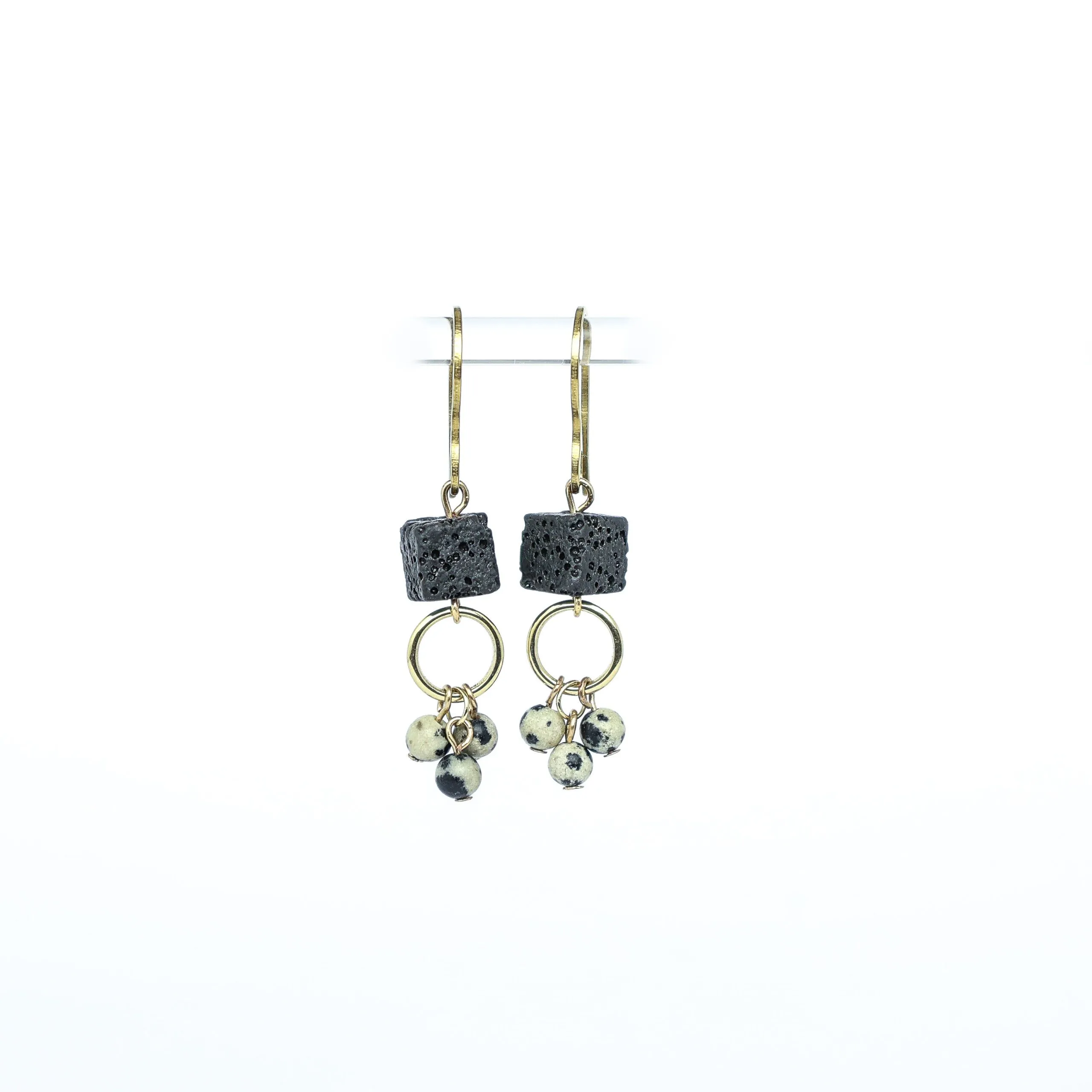 Gold Plated Earrings with Lava Beads and Dalmatian Jasper Stones