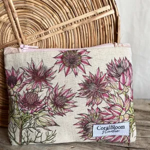 Step into a world of elegance and artistry with our stunning clutch bags, adorned with prints of original watercolour artworks of a Strelizia and sunbird, delicately painted by Ann C. Jooste.