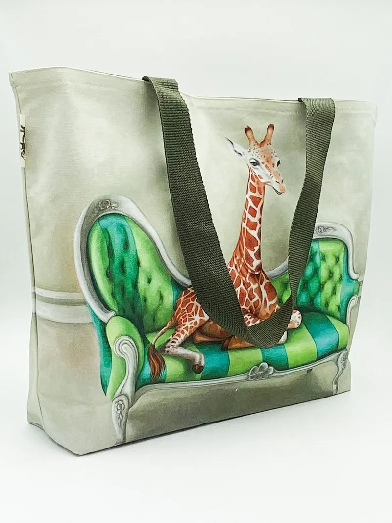 Giraffe at Leisure Canvas Bag by African Trading Port