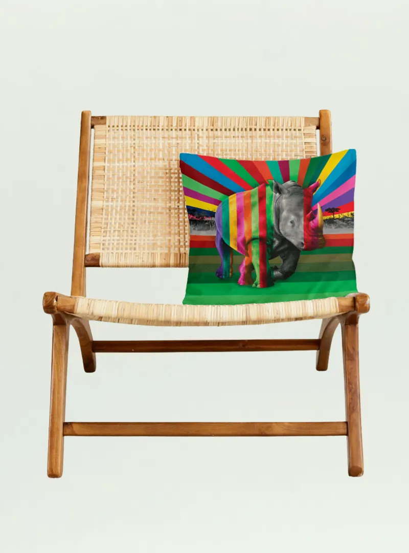 Rhino in Colour Pillow Cover by African Trading Port