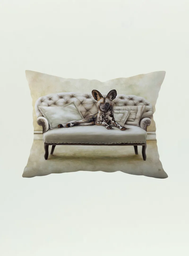 Wild Dog at Leisure Pillow Cover by African Trading Port