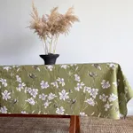 Immerse yourself in the enchanting world of indigenous South African Dieties Irises, beautifully depicted on a fresh green background. Crafted from locally produced fabric made from 100% recycled PET bottles, this tablecloth is not only an eco-friendly choice but also a testament to our commitment to a greener future. Printed with eco-friendly water-based ink, its durable and luxuriously soft texture will transform your table into a vibrant haven.