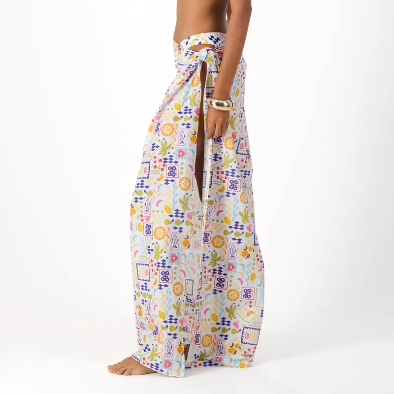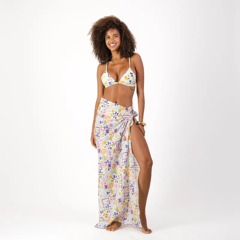 Bold, versatile, and made for endless summer styling. This longer-length sarong is designed to give you multiple ways to wear it , wrap it as a short skirt, tie it low as a full-length skirt, or style it as a bandeau dress for an effortless beach-to-bar look.