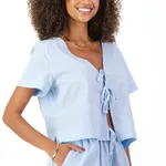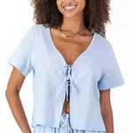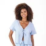 Womens Short Sleeve Tie Top / Plain / Light Blue by Granadilla