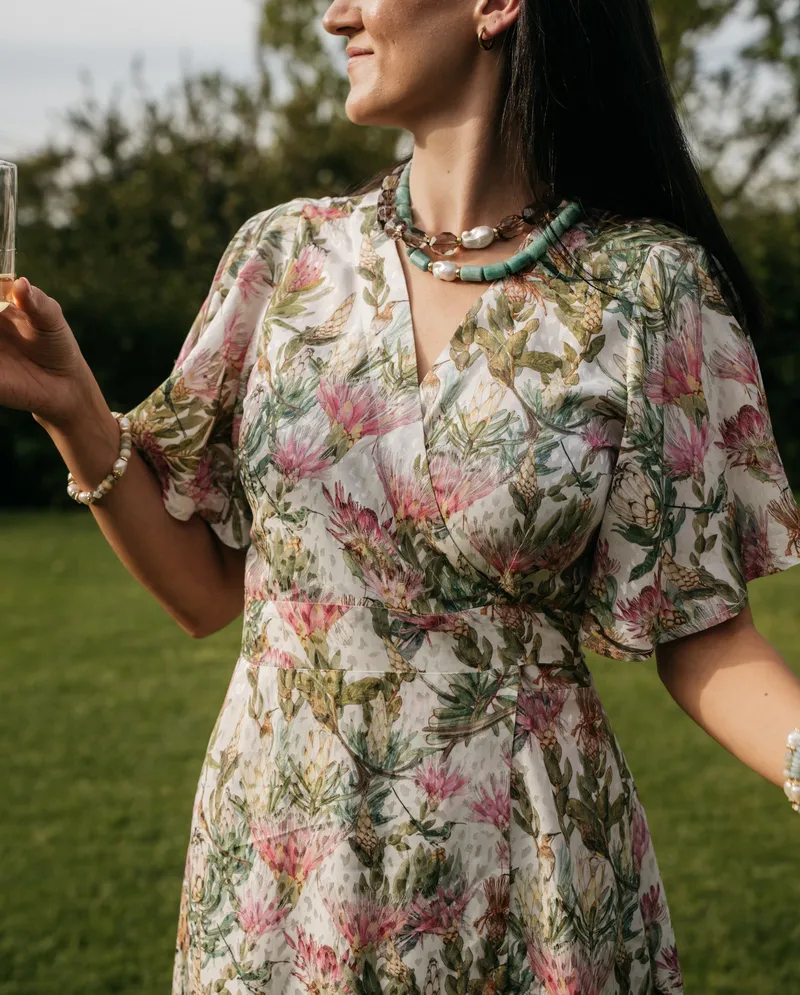 Effortlessly elegant and endlessly versatile, our Africa Adorned Wrap Dress is designed to flatter every shape while showcasing our signature nature-inspired prints. Made from sustainable Eco-Vero fabric and thoughtfully crafted in Cape Town, this timeless style is as comfortable as it is beautiful.