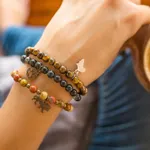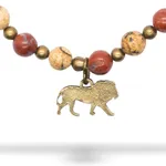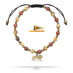 Wear your support with our beaded adjustable bracelet featuring a stunning combination of Red and Leopardskin Jasper beads and a custom-designed lion charm.